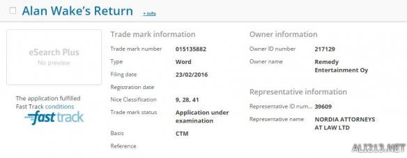 欧盟商标数据库显示,Remedy注册了一个尚未宣布的名为《心灵杀手:归来》(Alan Wake's Return)的商标。商标注册 该商标在2月23日注册,范围是电脑游戏软件、活动玩具和“带有电视功能的产